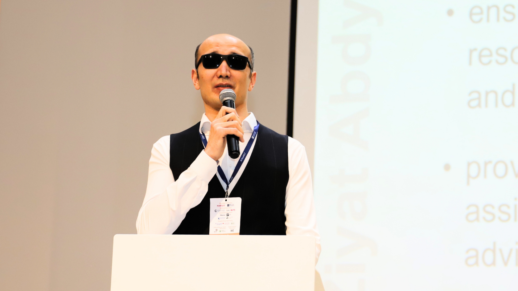 His session, delivered in an “Ask Me Anything” format, covered a wide range of topics, from digital accessibility and inclusive education at NU to his activism in disability rights and the broader disability movement in Kazakhstan. He also shared personal reflections on living with vision loss, everyday experiences, and learning English.