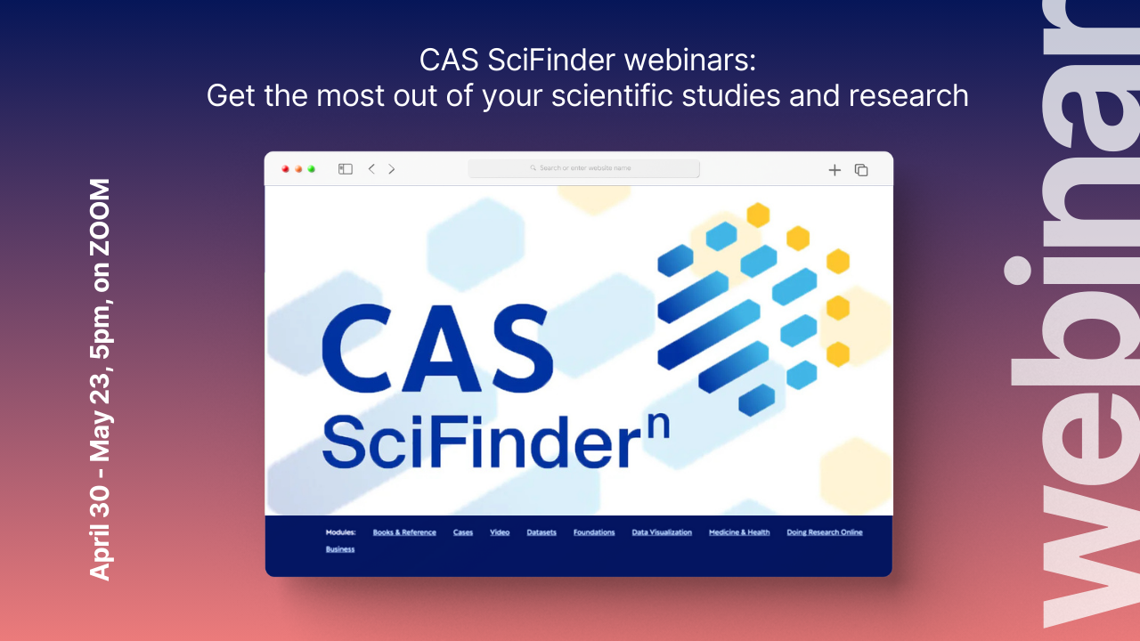 CAS, a division of the American Chemical Society, is offering a series of free webinars designed to help new users get started with SciFinder—a powerful research tool for chemistry and related sciences.