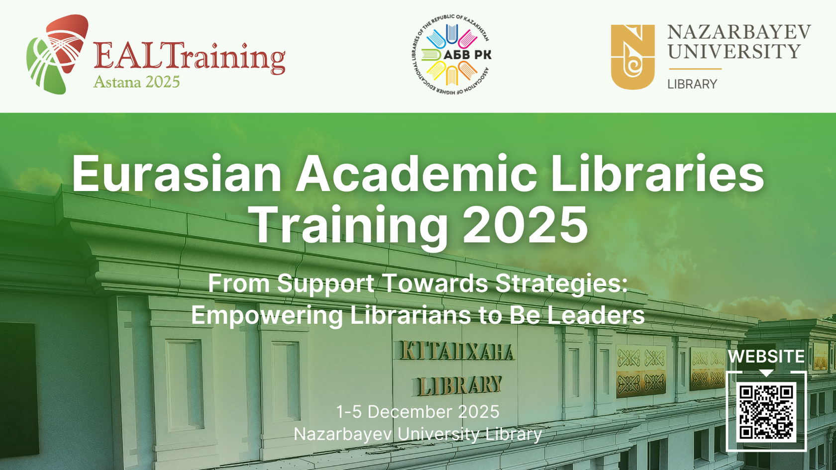 The training will take place at NU Library (53 Kabanbay Batyr Ave., Astana, Kazakhstan) on December 1-5, 2025.