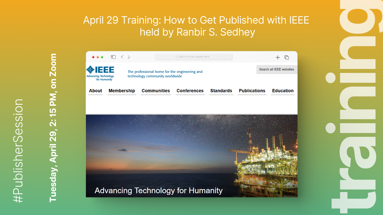 Are you looking to boost the visibility and impact of your research? Join our upcoming customized author workshop designed to help researchers like you successfully publish with IEEE, one of the world’s most respected technical publishers.