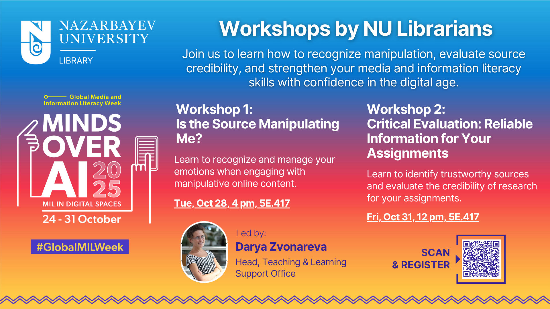 We invite you to join two interactive workshops led by NU Librarians as part of Global Media and Information Literacy Week 2025.