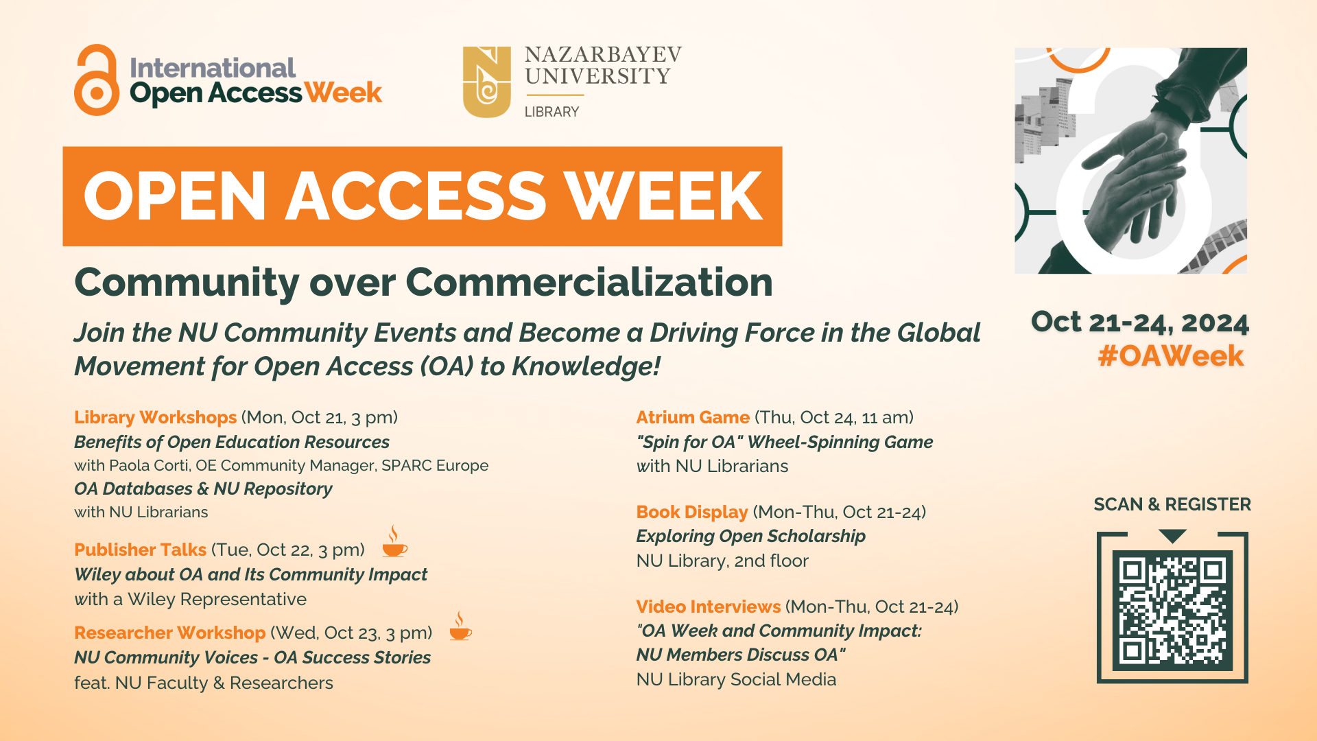 - Library Workshops (October 21, 3 PM): Explore Open Education Resources with Paola Corti and discover NU's Open Access Databases.