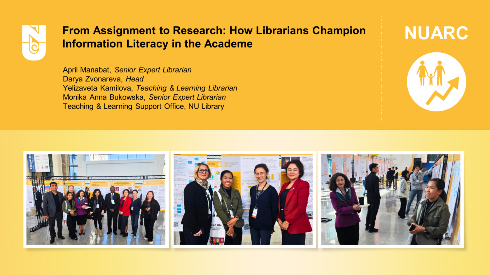 At the recent NU Annual Research Conference 2024: Shaping the Future of Research in Kazakhstan: Working Together for Success, our team from the Teaching & Learning Support Office took part in the poster exhibition, presenting their impactful study that reflects on undergraduate research through the lens of library instructional and reference support. The study highlights the critical role librarians play in shaping future researchers, experts, and scientists, fostering their academic growth and success.