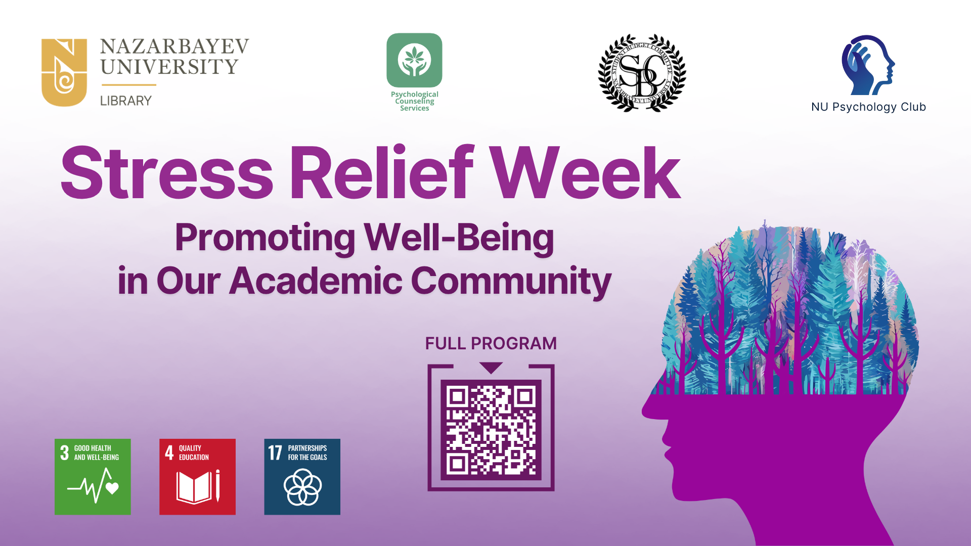This event is organized collaboratively by the NU Library, NU Psychological Counseling Services, and the NU Psychology Club, with support from the NU Student Fund.